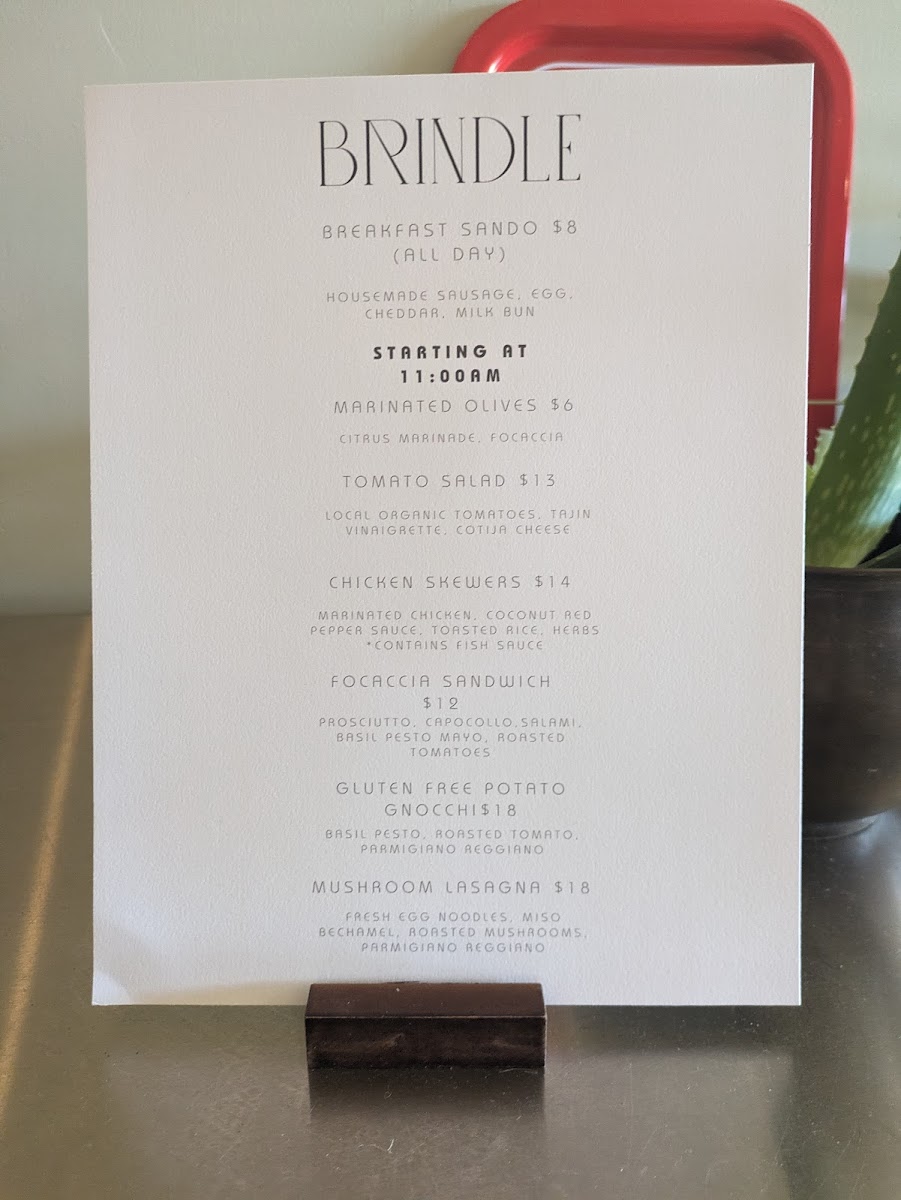 Brindle Menu